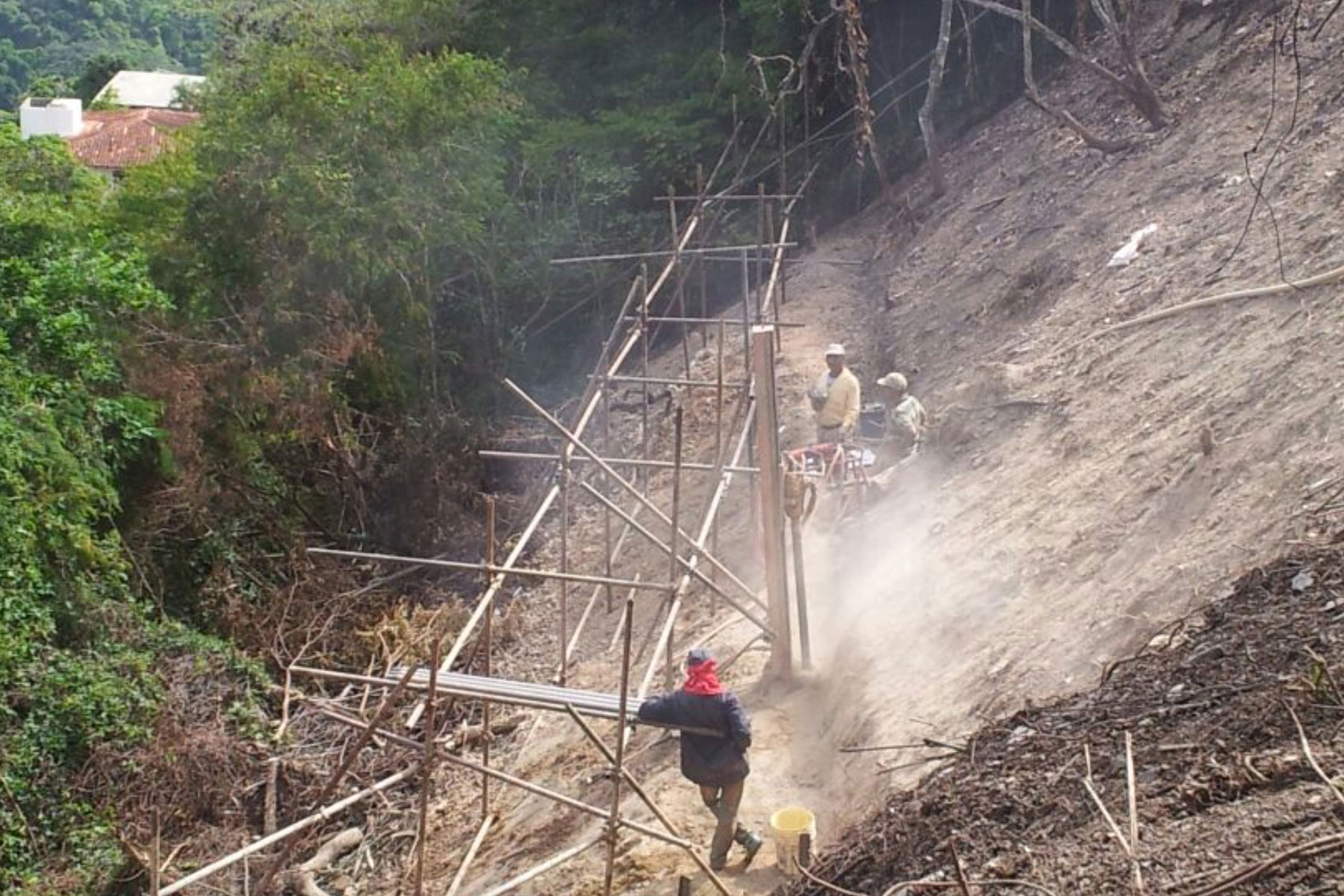 Hay muchos casos donde la construcción de muros es difícil debido a la imposibilidad de realizar excavaciones previas a la construcción del muro en si. En estos casos la construcción de pilas perforadas de 1,00 a 2,00 m de diámetro unidas entre sí , resulta una solución muy efectiva. El Soil Nailing es un método de refuerzo in situ que utiliza micropilotes vacíos capaces de movilizar resistencia a la tensión en los casos donde ocurra un movimiento. La diferencia de los pilotes con respecto a los micropilotes es que este último no resiste cargas laterales a flexión. Los micropilotes son conformados por cabillas de acero, vigas, tubos o cables que se introducen dentro del suelo natural o la roca blanda y luego son inyectados en perforaciones previamente realizadas. Generalmente los micropilotes son espaciados a distancias relativamente pequeñas.